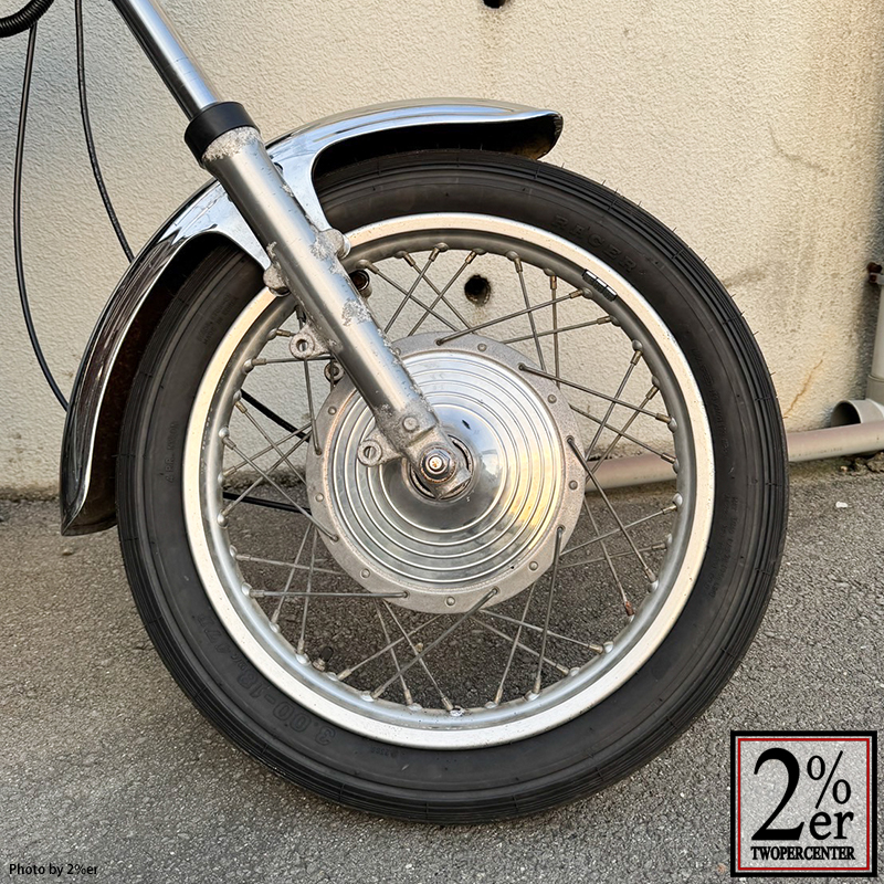 SR400/500純正ドラムフロントホイールに貼り付けるだけのカンタン取付けのアルミ製ハブキャップ。