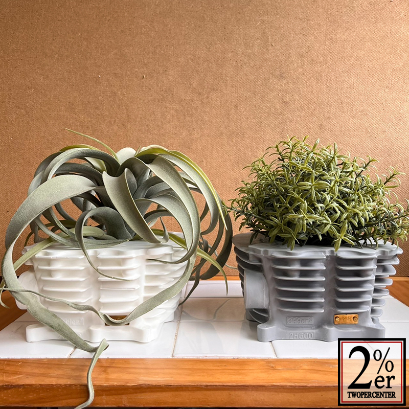 SRのシリンダーを型取り樹脂成型で制作されるシリンダーポット。