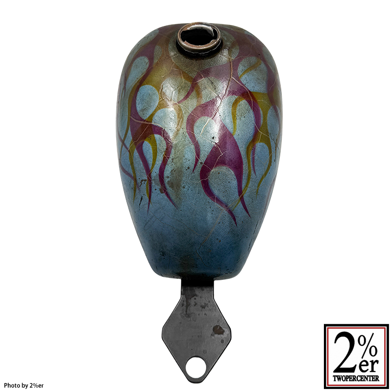 また外観は通常のピーナッツタンクのコンパクトなルックスを守りながら、タンク裏側トンネルはフレームにピタリと沿う独自の金型によるプレス成型で、フレームにバランスよく低く被りながらも市販のピーナッツタンク中最大、7.1リットルの大容量を確保しています。