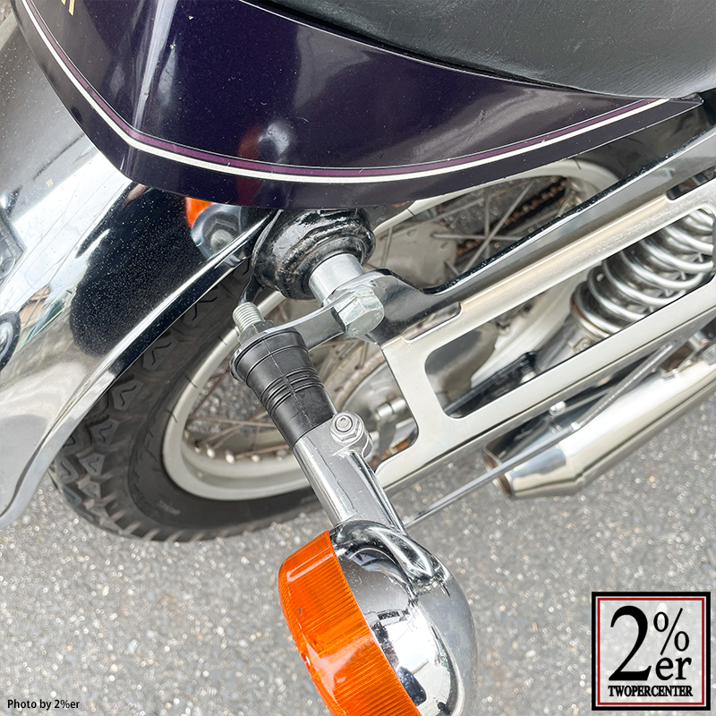 2%ER製『サイドバッグサポート』使用時など、純正リアウインカーの移設が必要な際に使用するシンプルな取付ステーです。
