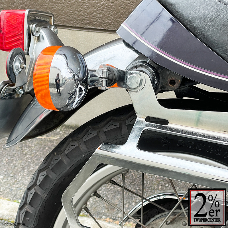2%ER製『サイドバッグサポート』使用時など、純正リアウインカーの移設が必要な際に使用するシンプルな取付ステーです。