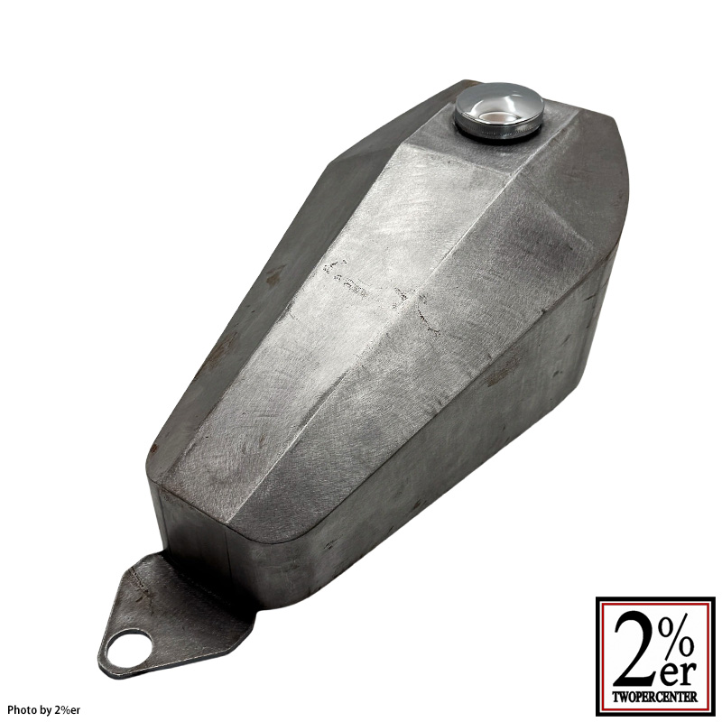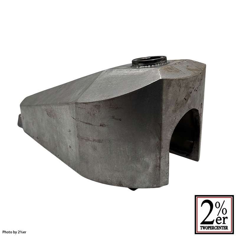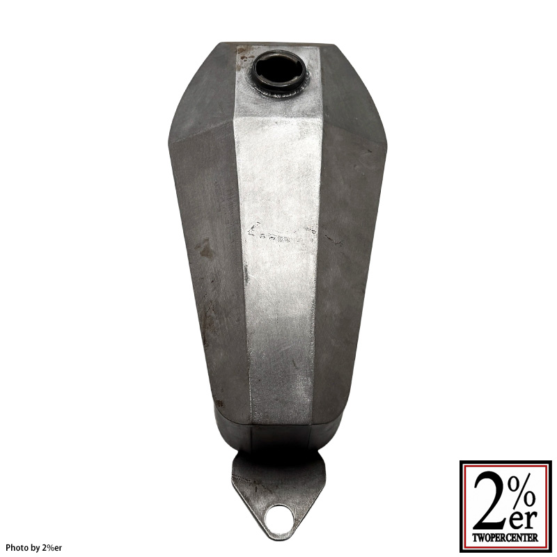 タンク裏側トンネルはフレームにピタリと沿う独自の金型によるプレス成型で、フレームにバランスよく低く被りながらも市販のピーナッツタンク中最大、7.1リットルの大容量を確保しています。