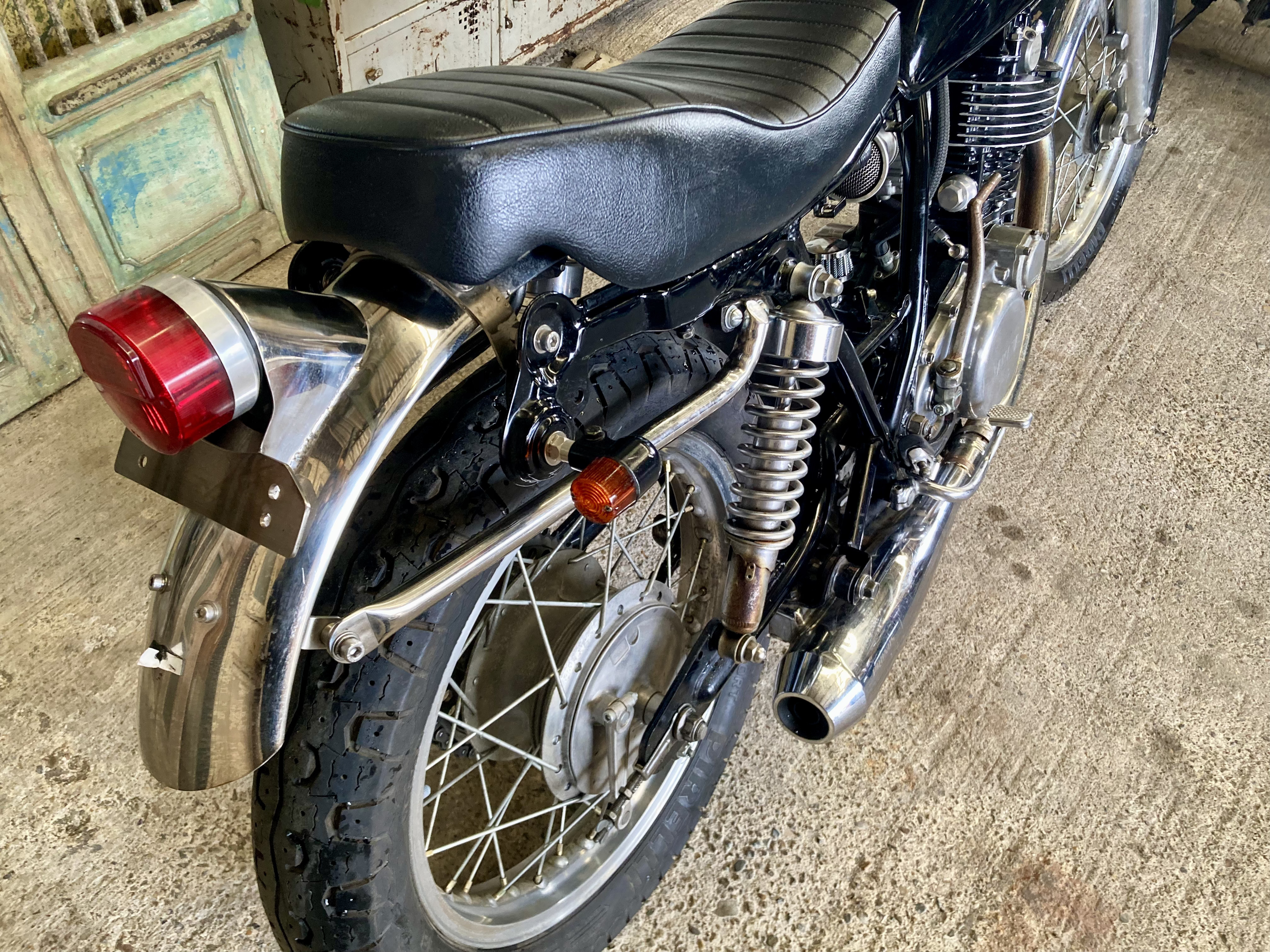ルーカスヘッドライトやプラナスマフラー、ステンレス製ワンオフリアフェンダーなど、