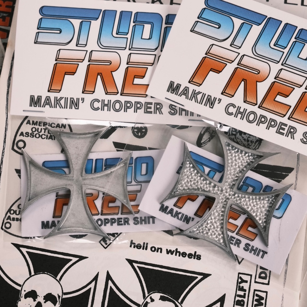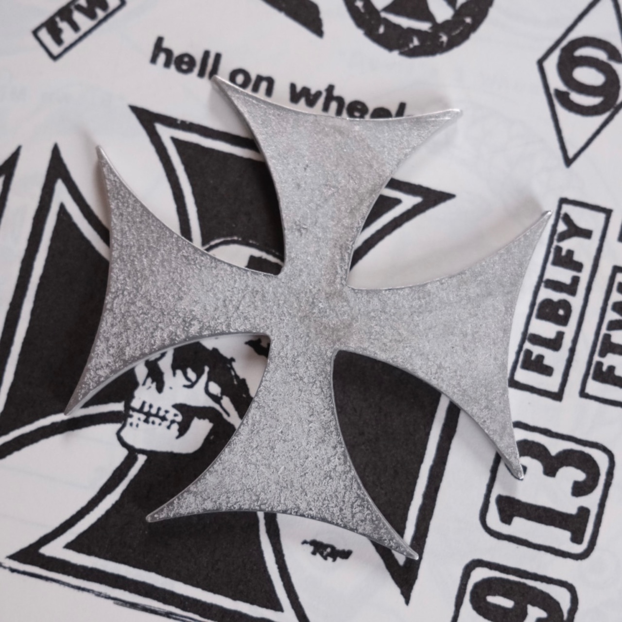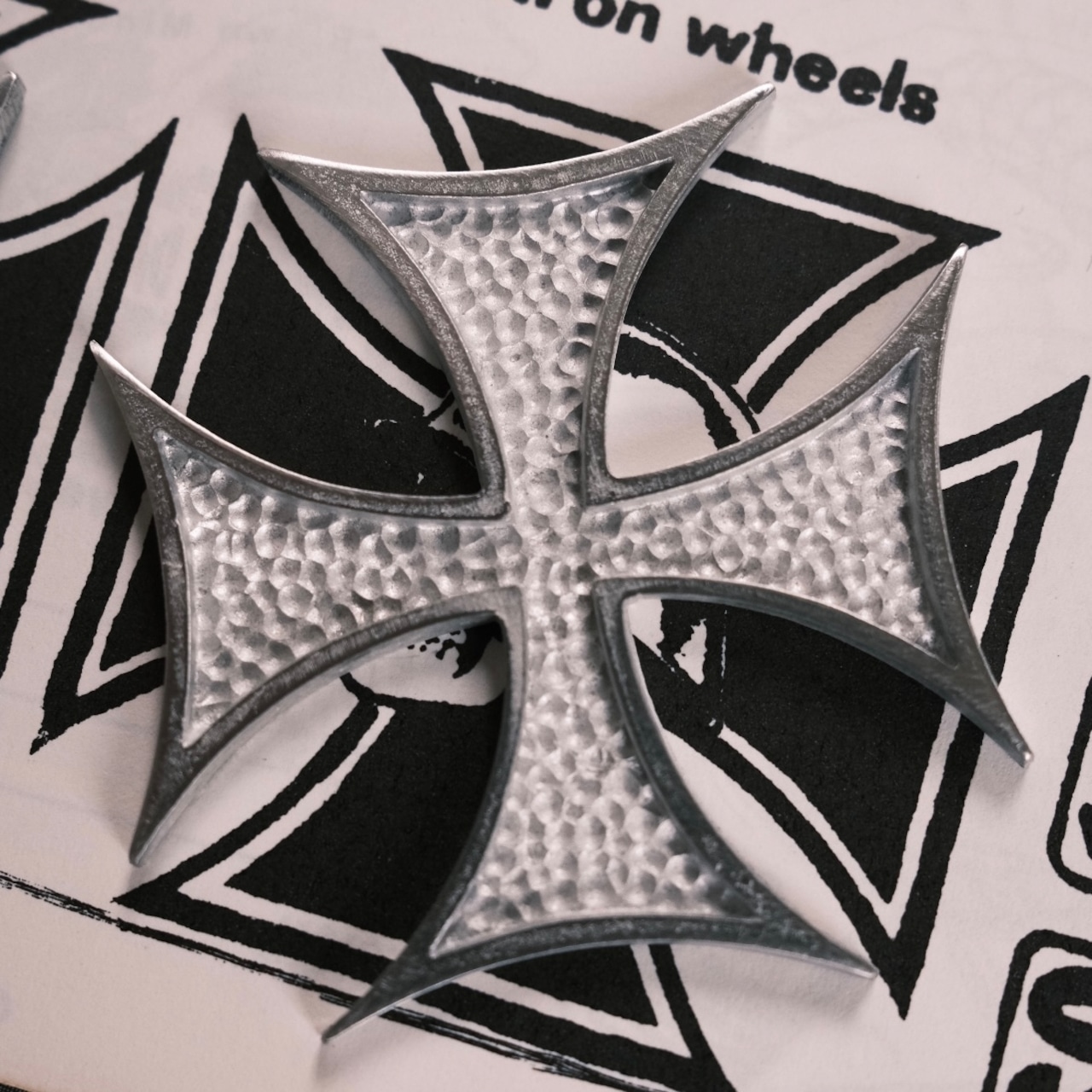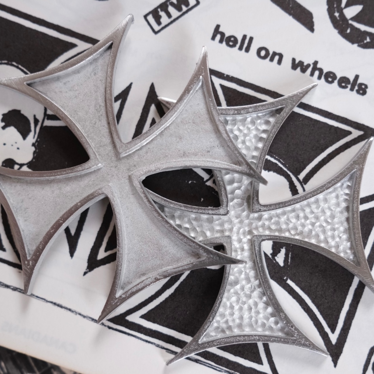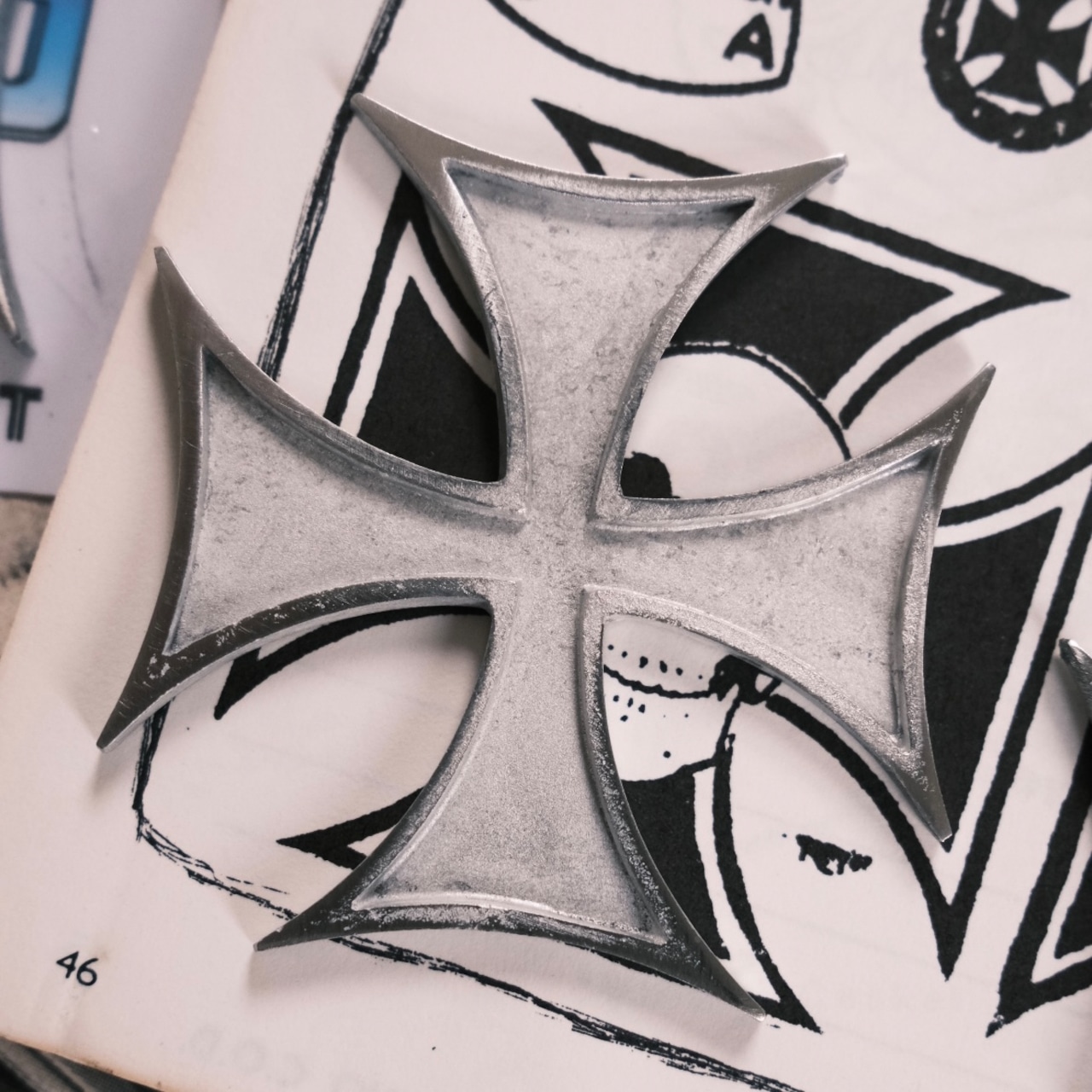 Chopperシーンにおいて、最も普遍的なアイコンであるアイアンクロス。当時のバイカー達に愛された、Ed Rothのウォーターデカールから型を起こし製作したアイテムです。