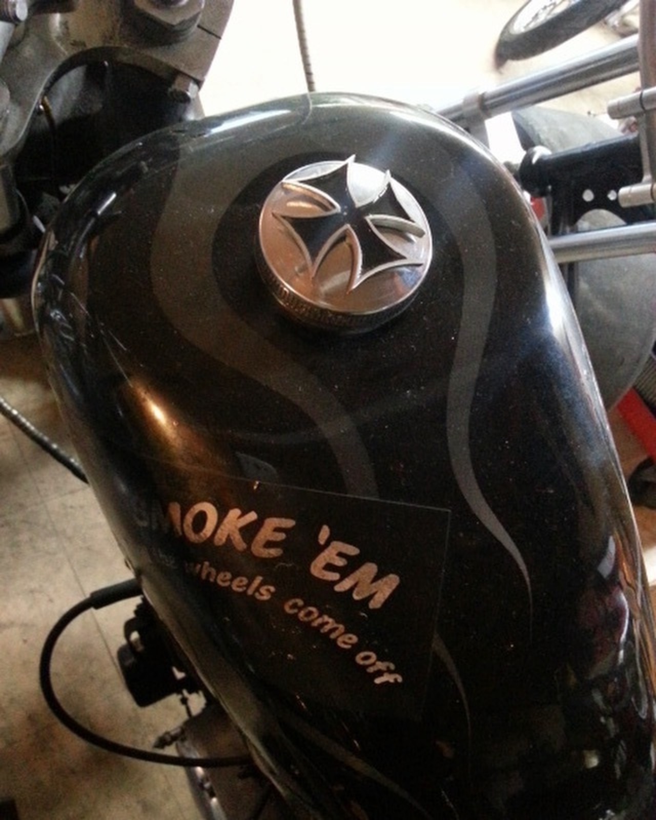 比較的柔軟性を持つピューター(錫)の特性から、ある程度の変形が可能で、タンクキャップ等の曲面の箇所での使用も可能。